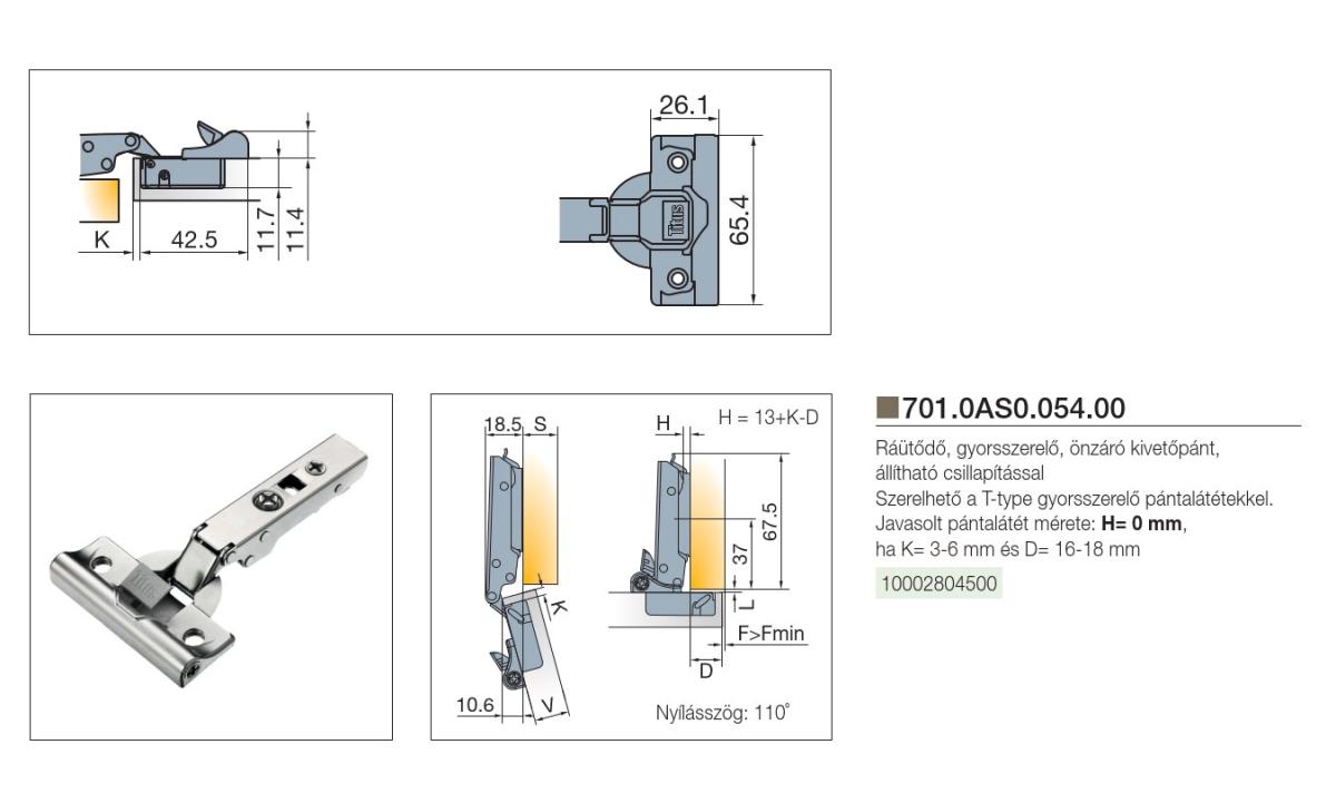 BÚTORPÁNT TITUS 701.0AS0.054.00 T-TYPE K KLIPPES GLISSANDO RÁÜTŐDŐ NIKKEL