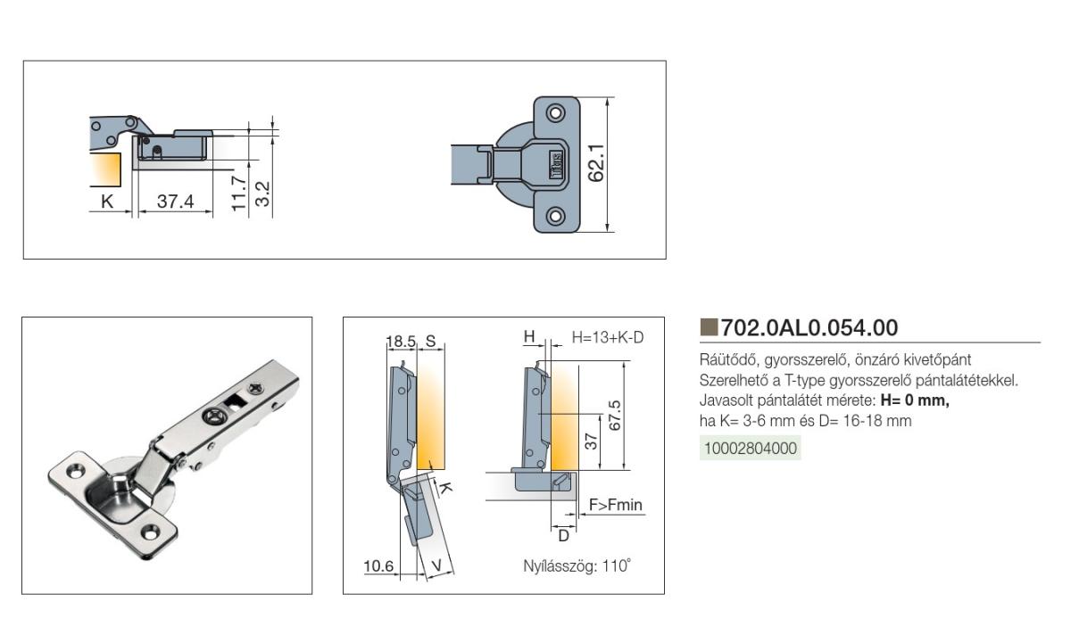 BÚTORPÁNT TITUS 702.0AL0.054.00 T-TYPE K KLIPPES RÁÜTŐDŐ NIKKEL