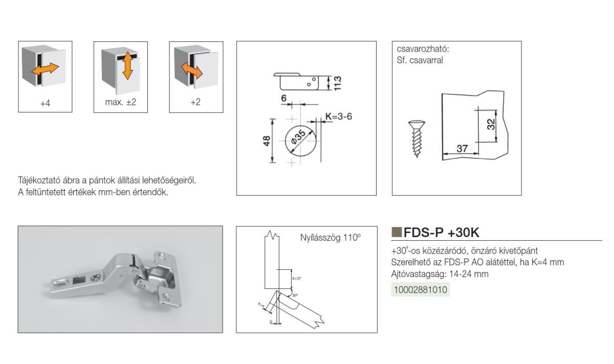 FDS-P +30K KÖZÉZÁRÓDÓ PÁNT +30 FOKOS K=4 NIKKEL FÉM