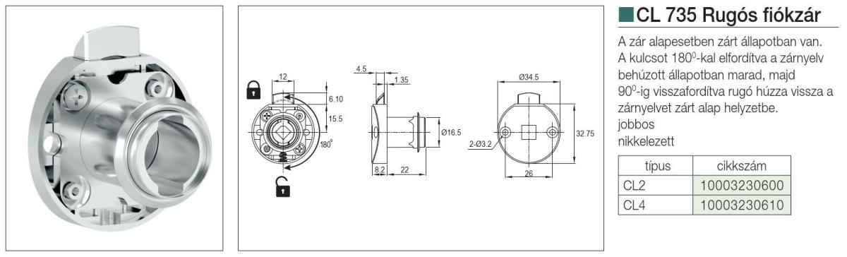 735-CL2 RUGÓS FIÓKZÁR 33x35mm KÖR NIKKEL FÉM