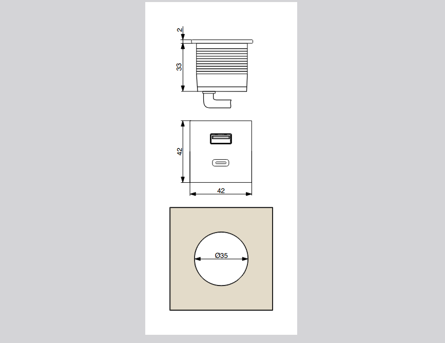 ASA Plastici Versapick töltőpont - négyz et USB A + USB C, fém ház, matt fehér