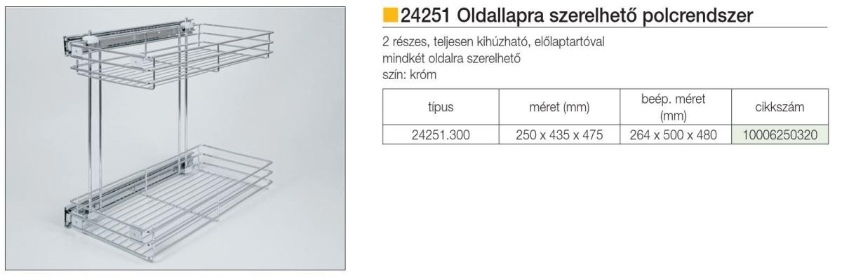 BELSŐ FÉMRÁCS OLDALLAPRA SZERELHETŐ 250x435x475mm KRÓM 24251.300