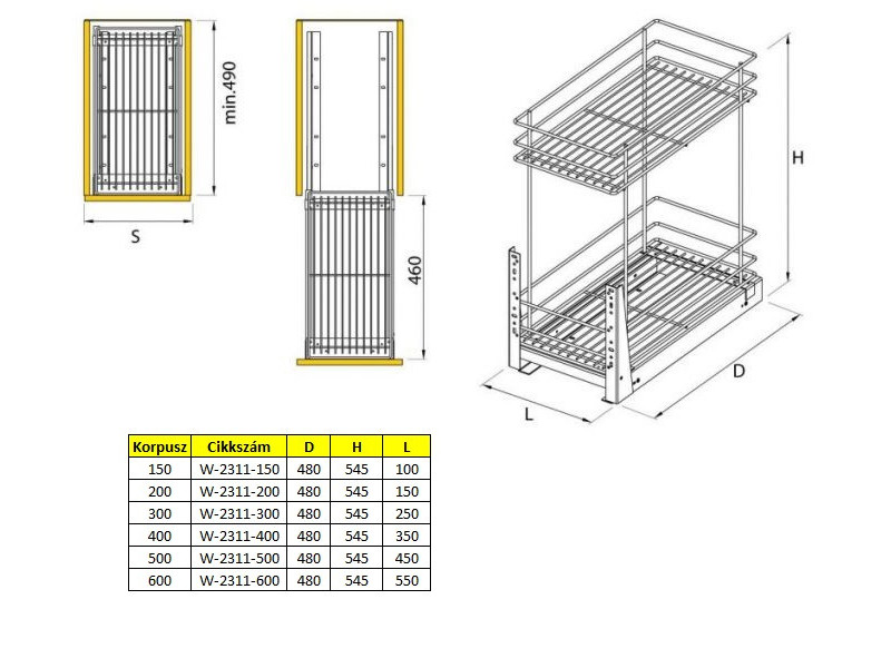 Teljes kihúzású fémrács 300 mm, KRÓM fenéklapra szerelhető