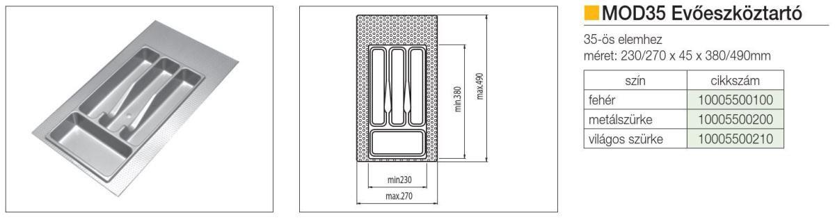 MOD EVŐESZKÖZTARTÓ 35 490×270 mm VILÁGOSSZÜRKE MÜANYAG