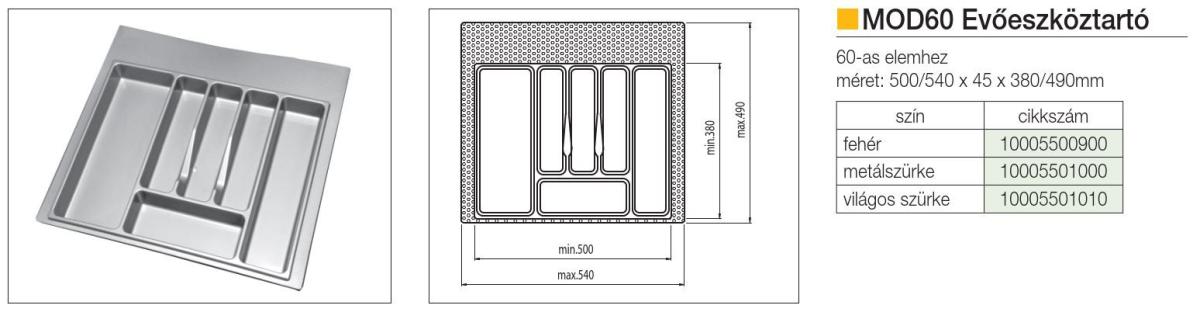 MOD EVŐESZKÖZTARTÓ 60 490×540 mm METÁLSZÜRKE MÜANYAG