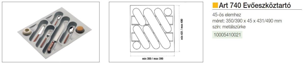 ART 740, EVŐESZKÖZTARTÓ METÁL SZÜRKE 45 350/390 x 431/490 mm MÜANYAG