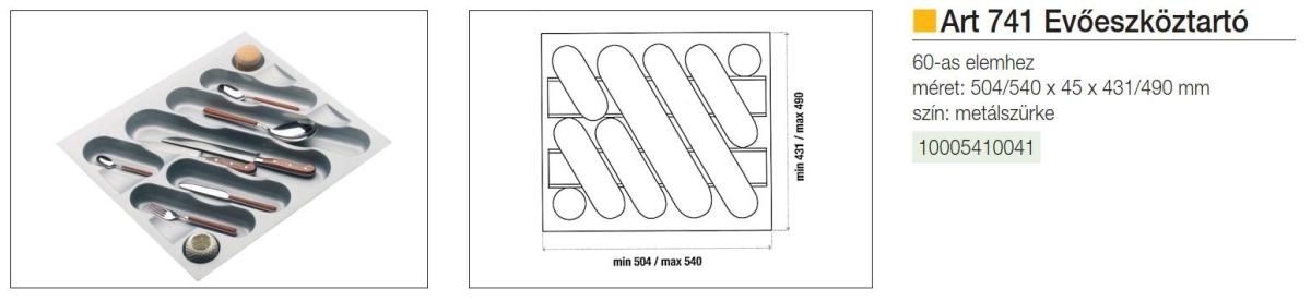 ART 741, EVŐESZKÖZTARTÓ METÁL SZÜRKE 60 504/540 x 431/490 mm MÜANYAG