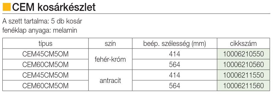 CEM60CM50MB KOSÁRKÉSZLET . KRÓM, FEHÉR FÉM, MELAMIN