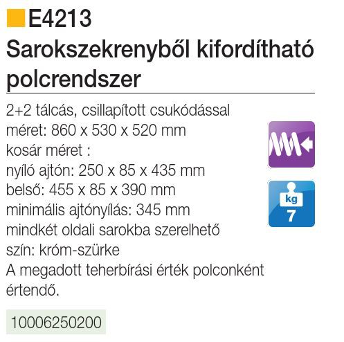 E4213 SAROKVASALAT csillap. cs 860x530x5 KRÓM-SZÜRKE FÉM