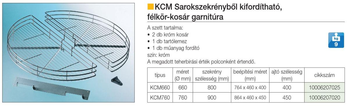 KCM760 FÉLKÖR KOSÁR GARNITURA 760×127×39 KRÓM FÉM