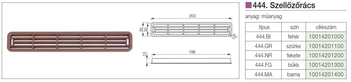 444 NÉGYSZÖG ALAKÚ SZELLŐZŐRÁCS FEKETE, 203x35x14 mm MÜANYAG