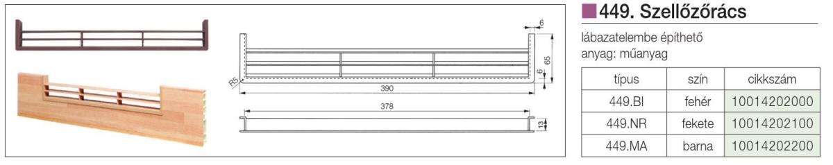 449 LÁBAZATELEMBE ÉPITHETÖ SZELLŐZŐRÁCS BARNA, 390x65x18 mm MÜANYAG