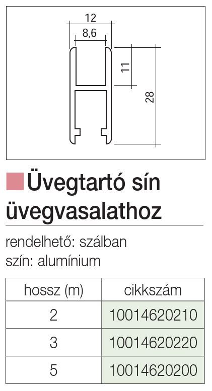 TOLÓAJTÓ ÜVEGHEZ 04 6303 002 012 ÜVEGAJTÓ SÍN 3000mm ALUMÍNIUM